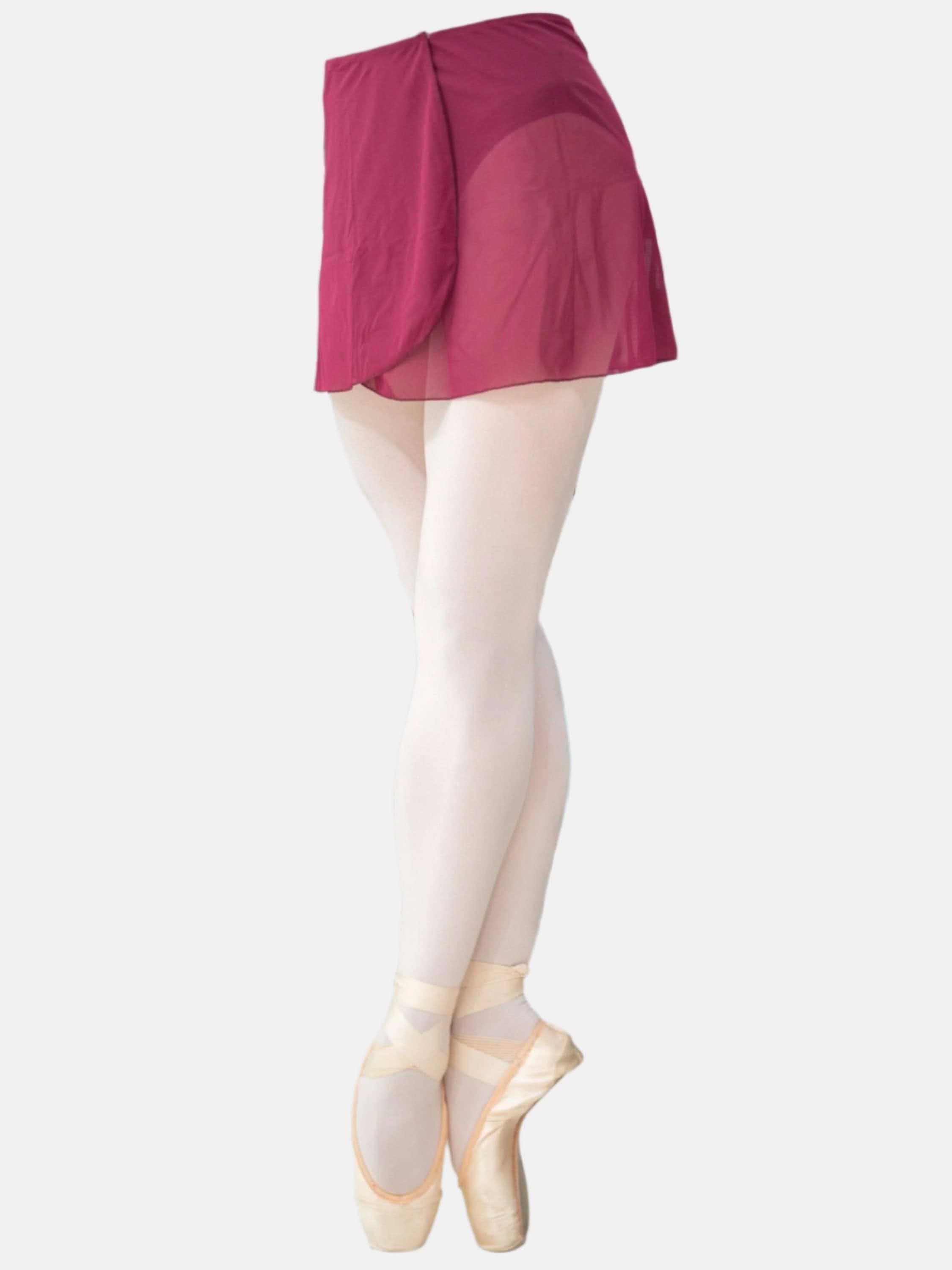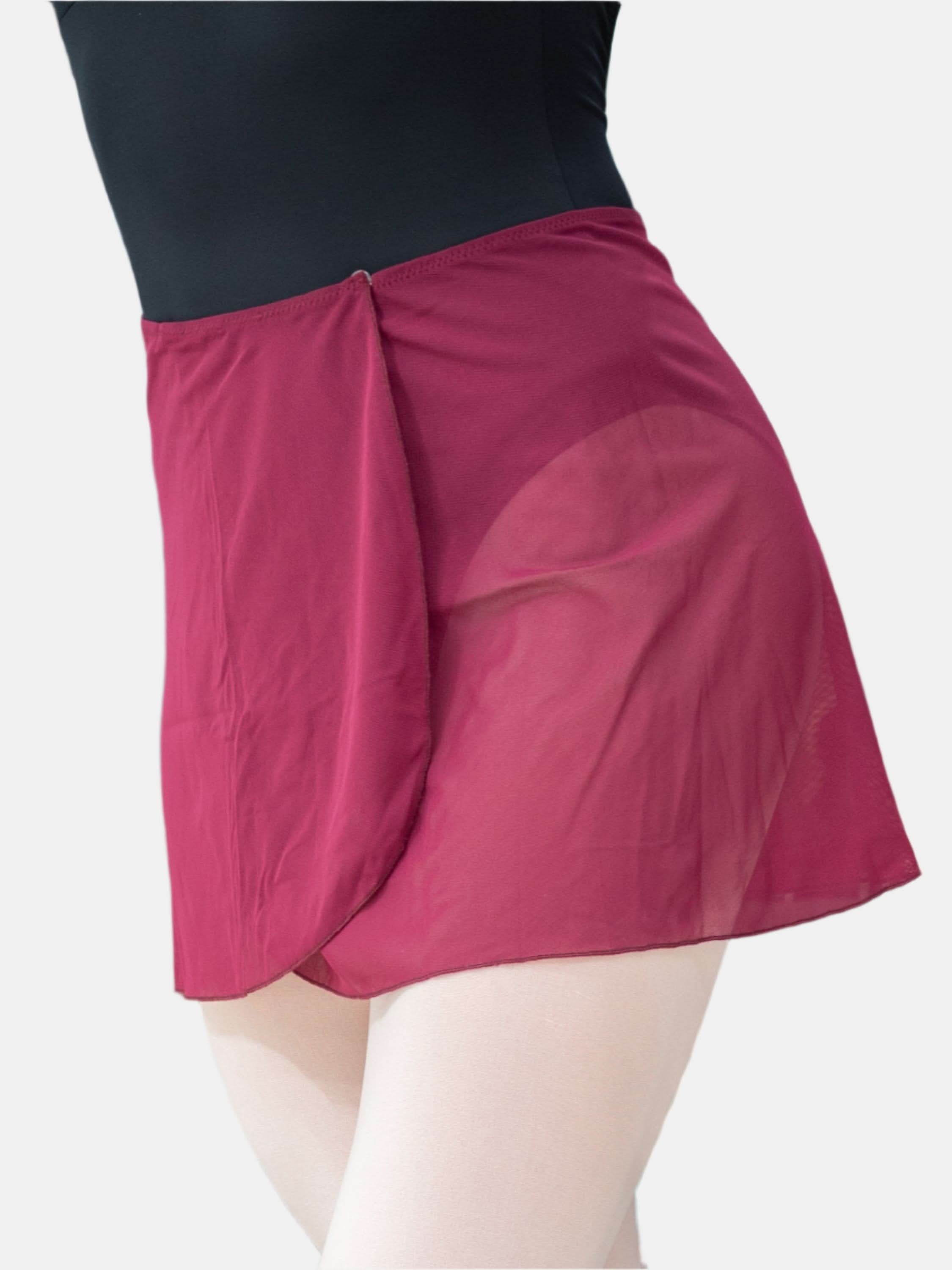 La falda corta de ballet cruzada burgundy MP301 es perfecta por tus clases de cada día o ensayos. Esta falda está hecha de Malla, un tejido elegante y transparente.